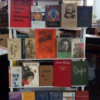 Цель нашей выставки – показать через призму художественной литературы, изобразительного искусства все многообразие и многослойность советской культуры, ее особенность, неповторимость и противоречивость. Вниманию читателей и посетителей выставки предлагаются к прочтению и просмотру произведения советских писателей и художников, вещи, сувениры, значки, виниловые пластинки и другие символы эпохи СССР.