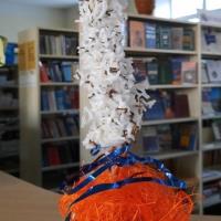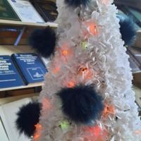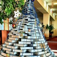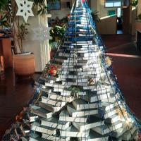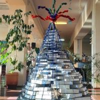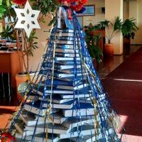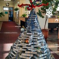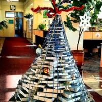 Центральное место в праздничном убранстве занимает, конечно же, настоящая книжная елка из учебников! На окнах мерцают огромные снежинки из потолочной плитки и мчатся навстречу Новому году по заснеженным бумажным сугробам, жизнерадостные северные олени из картона.